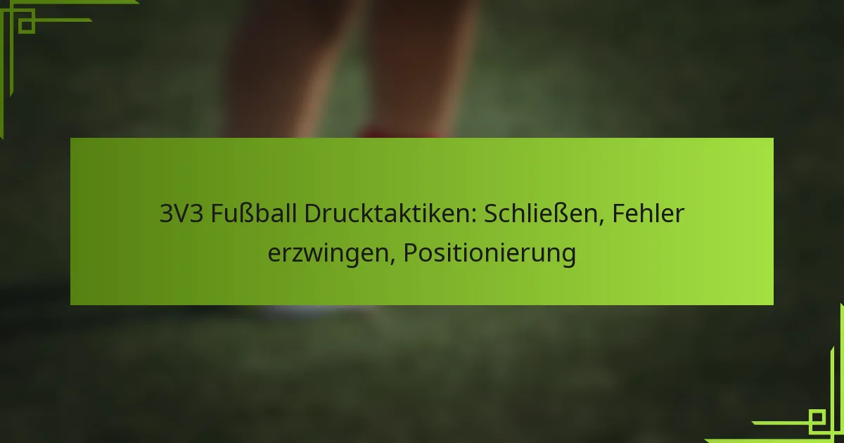 Wichtige Drucktaktiken im 3v3-Fußball umfassen das Schließen von Gegnern, das Erzwingen von Fehlern und das Beibehalten einer strategischen Positionierung. Diese Taktiken sind unerlässlich, um die Kontrolle über das Spiel zu gewinnen und Tormöglichkeiten zu schaffen, während die Chancen des Gegners minimiert werden.